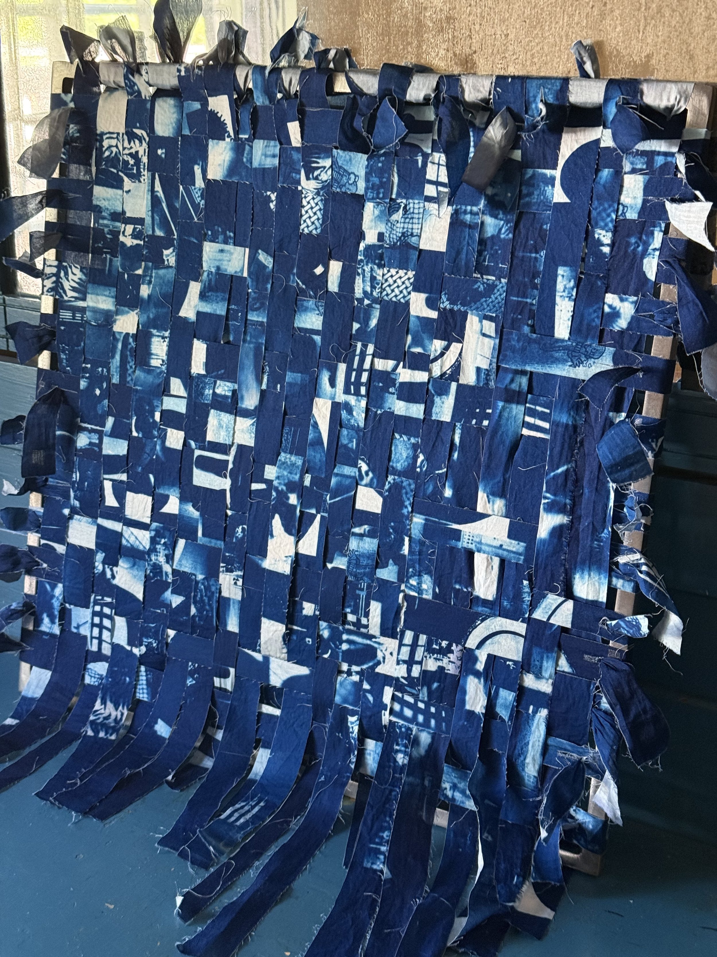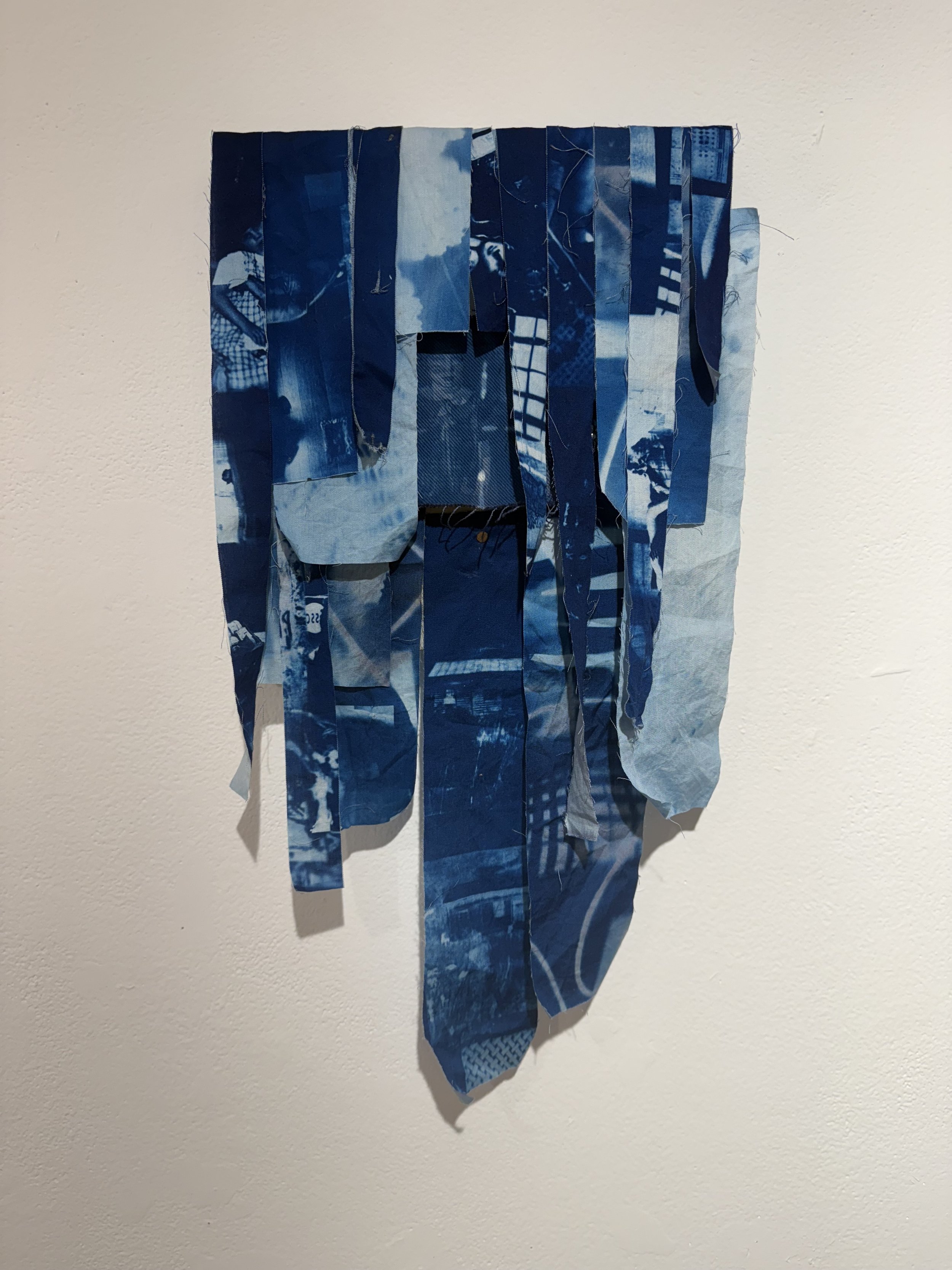 steel, cotton, found pinewood